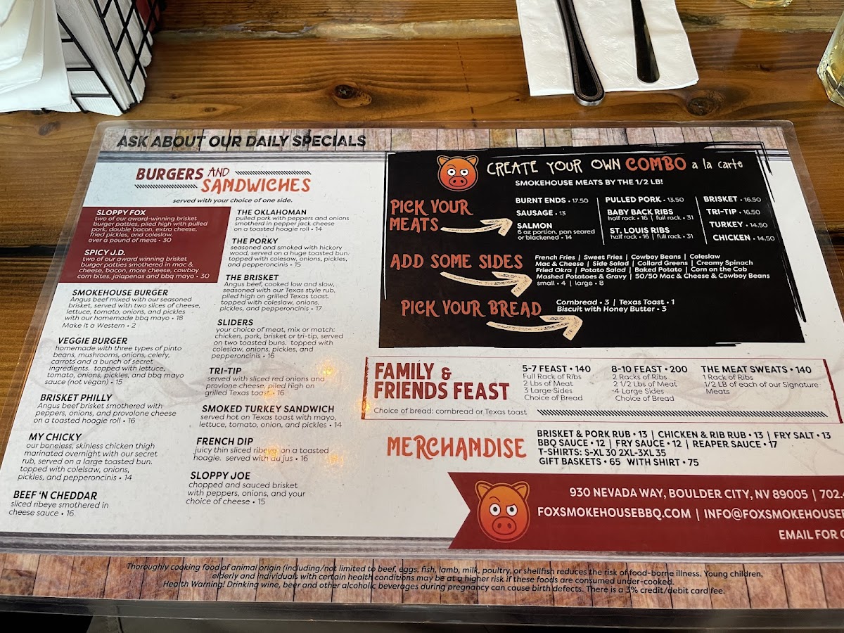 Welcome to Fox Smokehouse BBQ, a barbecue haven nestled in Boulder City, NV. This restaurant invites you to dive into a mouthwatering menu featuring well-crafted starters and hearty mains that celebrate the essence of smokehouse fare.