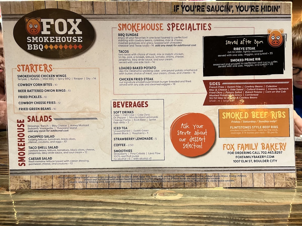 Fox Smokehouse BBQ Menu